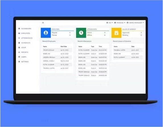 Employee Attendance Management is easy to use and designed to manage employees time clock accurate clock-in and clock-out. With it, employees can track time using an online timer, and you can track employee attendance, see late clock-ins or early outs, and export data for payroll system.