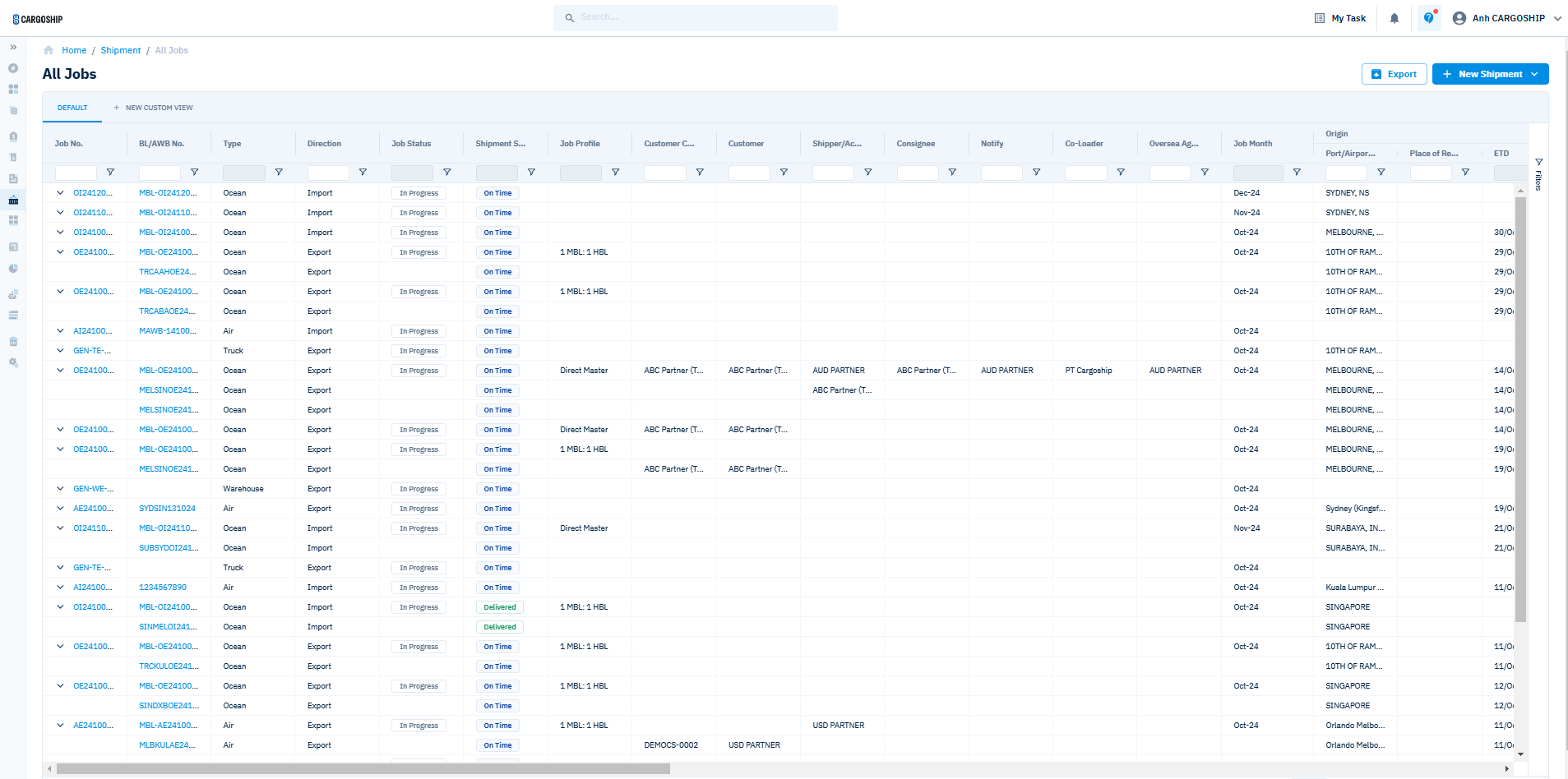 Manage all shipments, monitor and review.